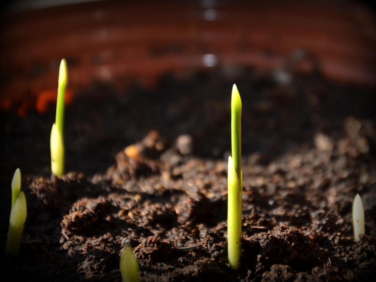 - Контейнеры (чаще цветочные горшки) выставляют на подоконник и проращивают в естественных условиях, при комнатной температуре.