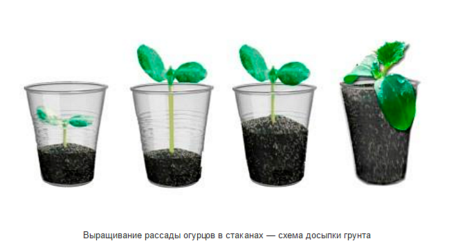 Подсыпание землиВажно! Не вздумайте сажать огурцы на рассаду в марте, без дополнительного искусственного освещения они будут неминуемого вытягиваться. Тем более, в этом нет никакого смысла, ведь рассаду огурцов можно высаживать в грунт уже через 20-30 дней после всходов.