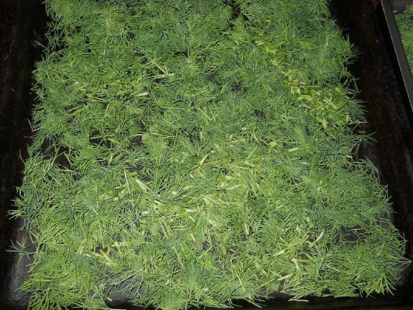 Разложите нарезанную зелень на горизонтальных поверхностях: больших ситах, поддонах, противнях или решетках от духовки тонким слоем.