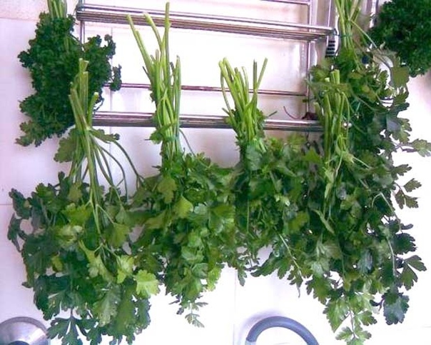 На зелень не должны попадать прямые солнечные лучи, чтобы потом не пришлось думать, почему петрушка желтеет при сушке. Хлорофилл в листьях разрушается под воздействием ультрафиолета, поэтому лучше сушить их в темных, сухих помещениях: кладовых, сараях, на чердаках.