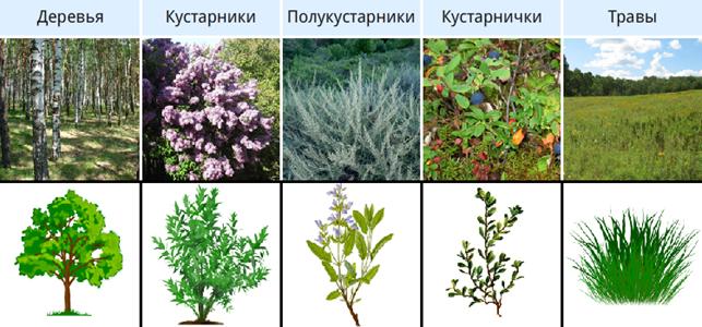 В зависимости от вида, выглядят кустарники по-разному. Их разделяют на три большие группы, вот какие бывают виды кустарников: