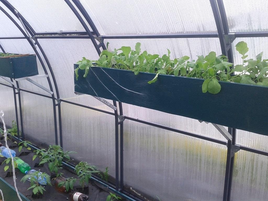Поднимают грядки в теплице и с помощью асбестоцеметных плит – их нужно резать и прислонять к металлическим прутам.