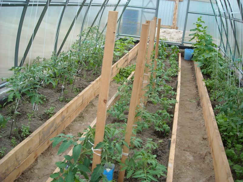А вот грядки под томаты в теплице можно формировать и узкими, особенно если вы выбираете индетерминантные (с неограниченным ростом) сорта и гибриды.