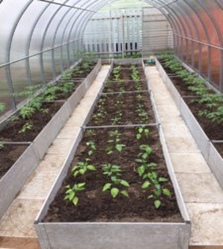 При установке теплицы старайтесь ориентировать ее (а соответственно и гряды внутри нее) с запада на восток, чтобы все растения внутри получали одинаковое количество солнечного света. Если же это невозможно, и теплица построена с юга на север, высаживайте высокорослые культуры у северной стены, чтобы они не затеняли своих маленьких соседей.