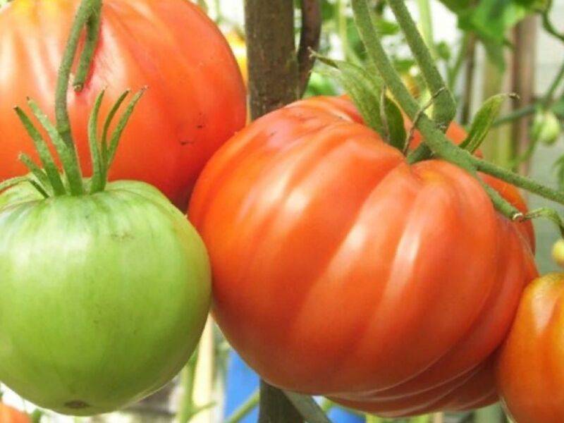 Это индетерминантный сорт, дающий большие, от шести до восьми унций ребристые и приплюснутые плоды с крепкой красной мякотью.