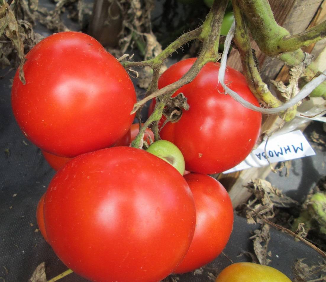 Плоды красные плоско-округлые, гладкие, 110-135 г. Вкус хороший и отличный. Плоды товарные, хорошо перенося транспортировку, лежкие. Устойчив к болезням, пригоден к малообъемной технологии выращивания.