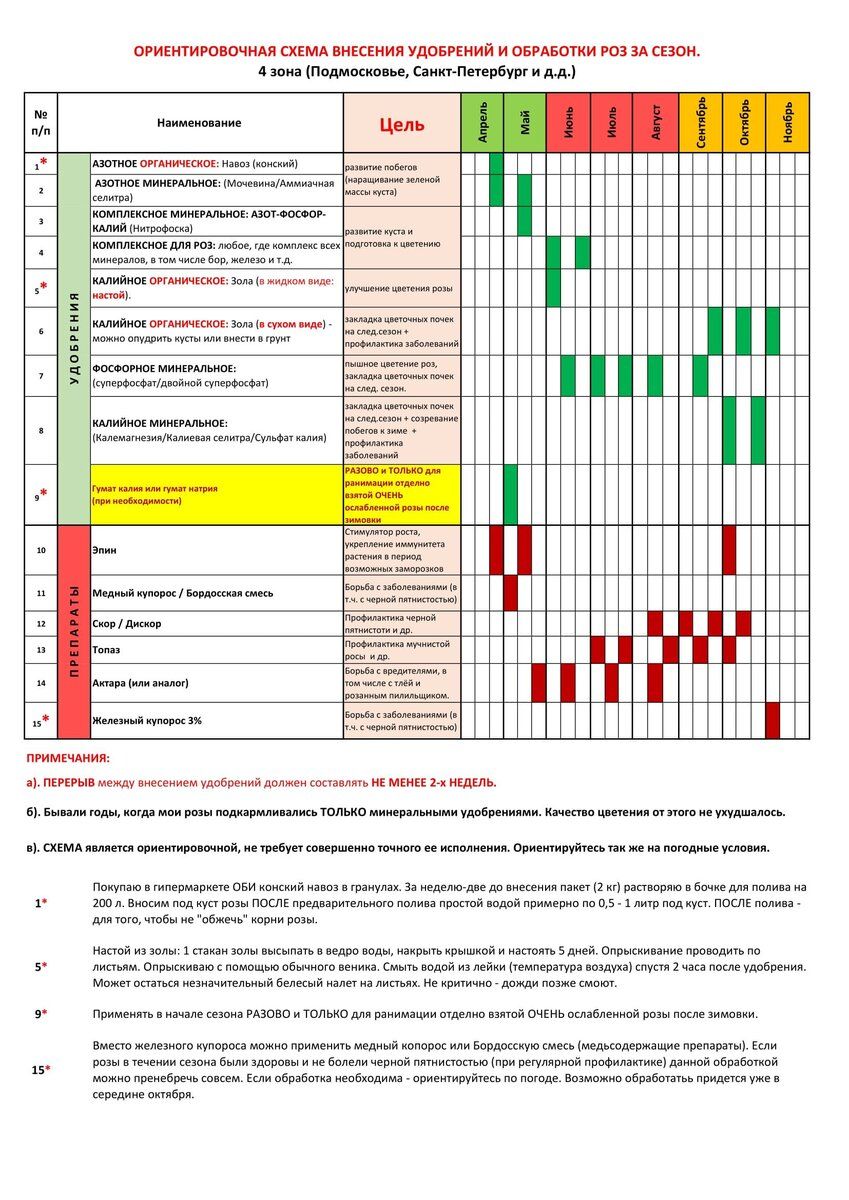 | Четыре (только с орошением) (высококачественный газон) | Начало мая, середина июня, начало сентября, конец октября/начало ноября |