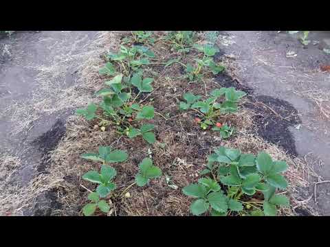 Грядки и междурядья мульчируют слоем около 20см, используя солому или опилки. Можно укрывать клубнику нетканным укрывным материалом, типа лутрасила и спанбона.