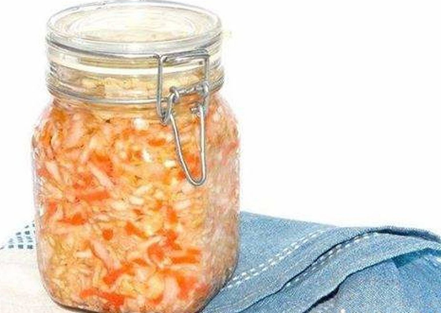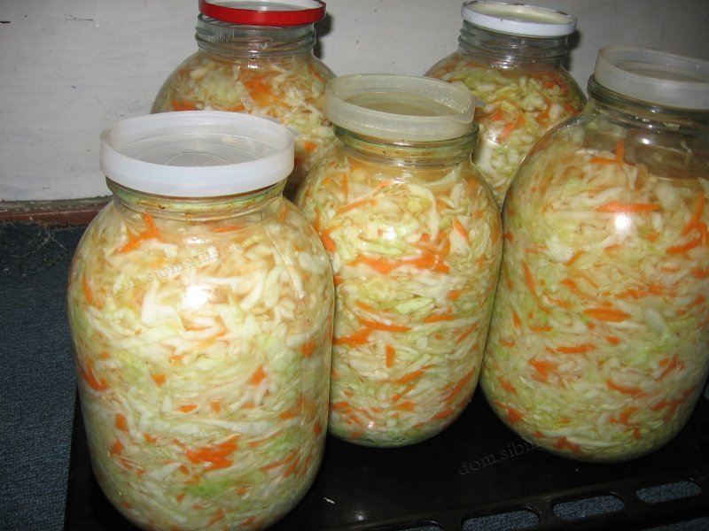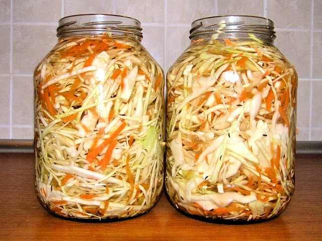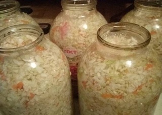 Ингредиенты перемешиваются, смесь утрамбовывают в стеклянные емкости. Процесс брожения происходит 1-3 суток при комнатной температуре, готовое угощение отправляют храниться на полку холодильника.
