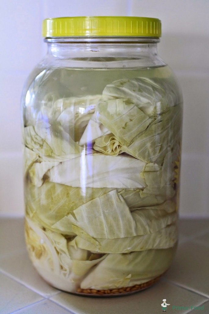 Если у вас уже есть ферментированная капуста, вы можете пропустить часть, где вы варите, и замочите капусту в уксусной воде с солью.