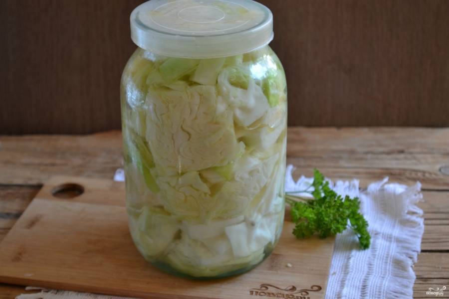 Прошлой осенью не мариновал капусту. В таких случаях, когда мне очень хочется этих булочек, я просто отвариваю весь кочан в соленой уксусной воде и под крышкой. Подержите это как бы маринад в кипяченой воде на час или около того.