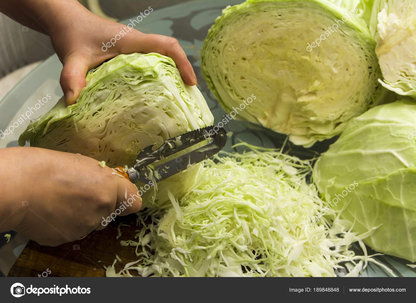 6 стаканов мелко нашинкованной зеленой капусты, около фунта или ½ небольшого кочана