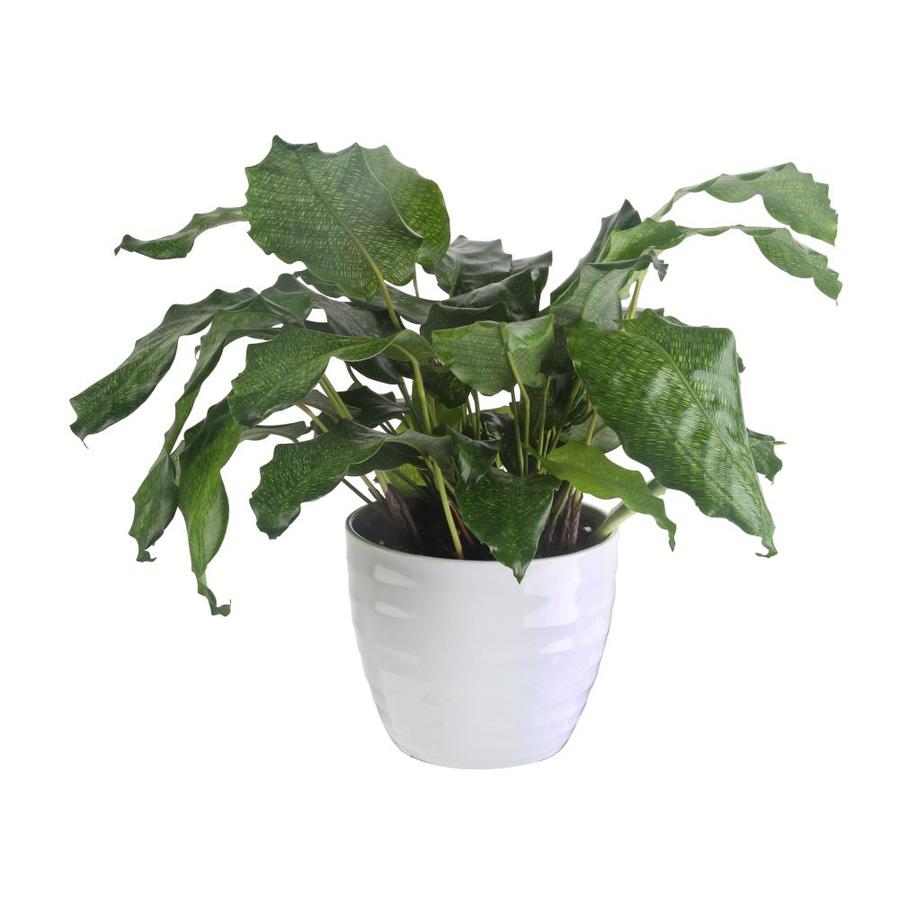 Network Calathea — это новое (и модное) комнатное растение с фантастически пестрой листвой. Его ланцетовидные средне-зеленые листья имеют темно-зеленые жилки. Они образуют узор, который выглядит почти как цифровая сеть. Эффект особенно заметен, когда листья подсвечиваются сзади.