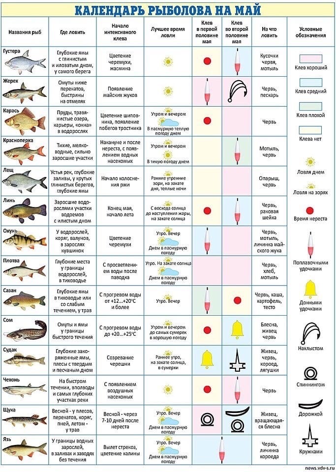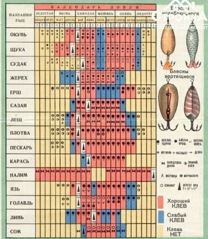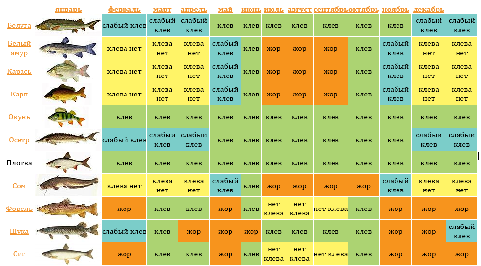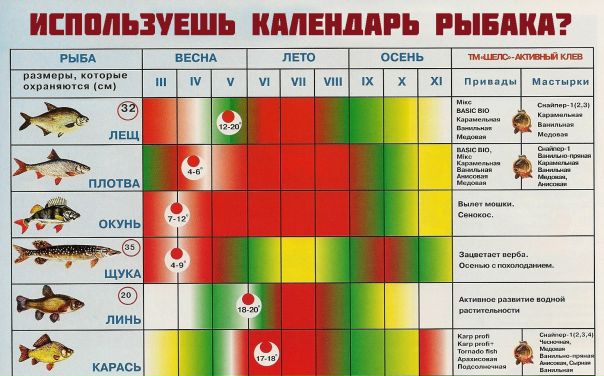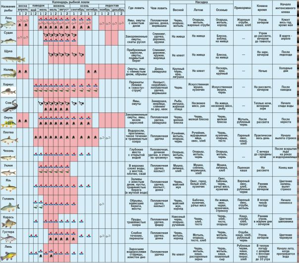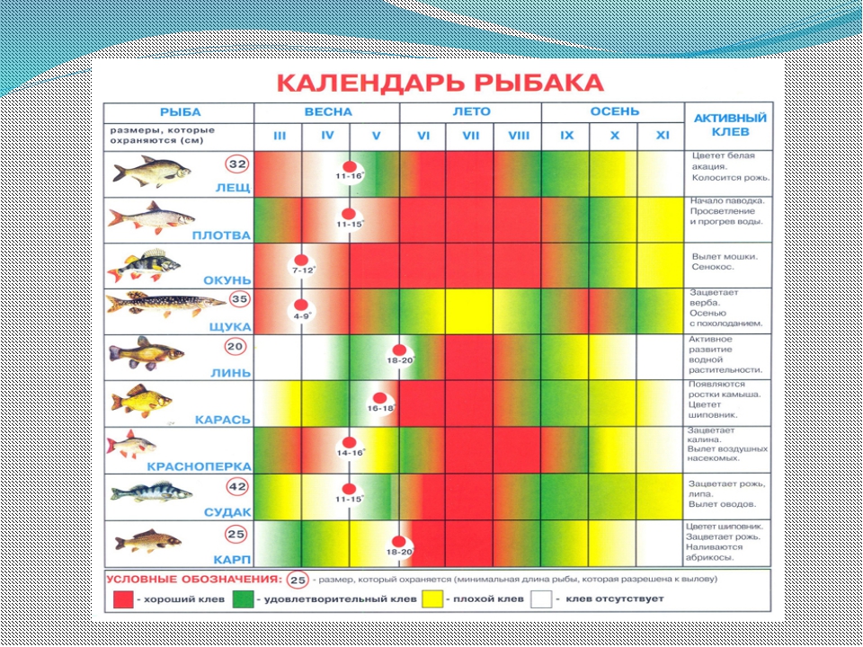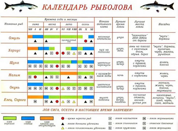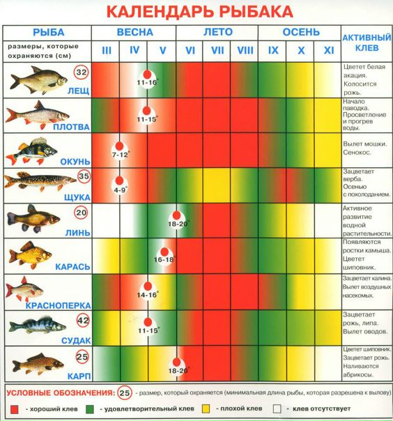 Сезон — Большинство рыб охотнее клюют во время сезонных переходов, причем переход от зимы к весне и лета к осени является двумя лучшими временами для ловли рыбы.