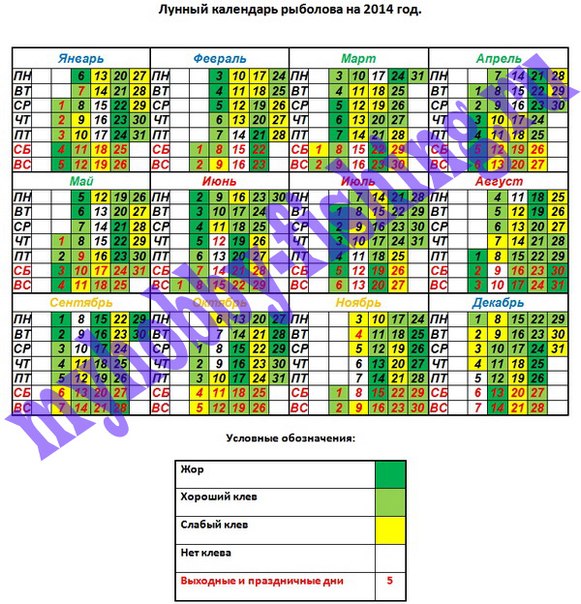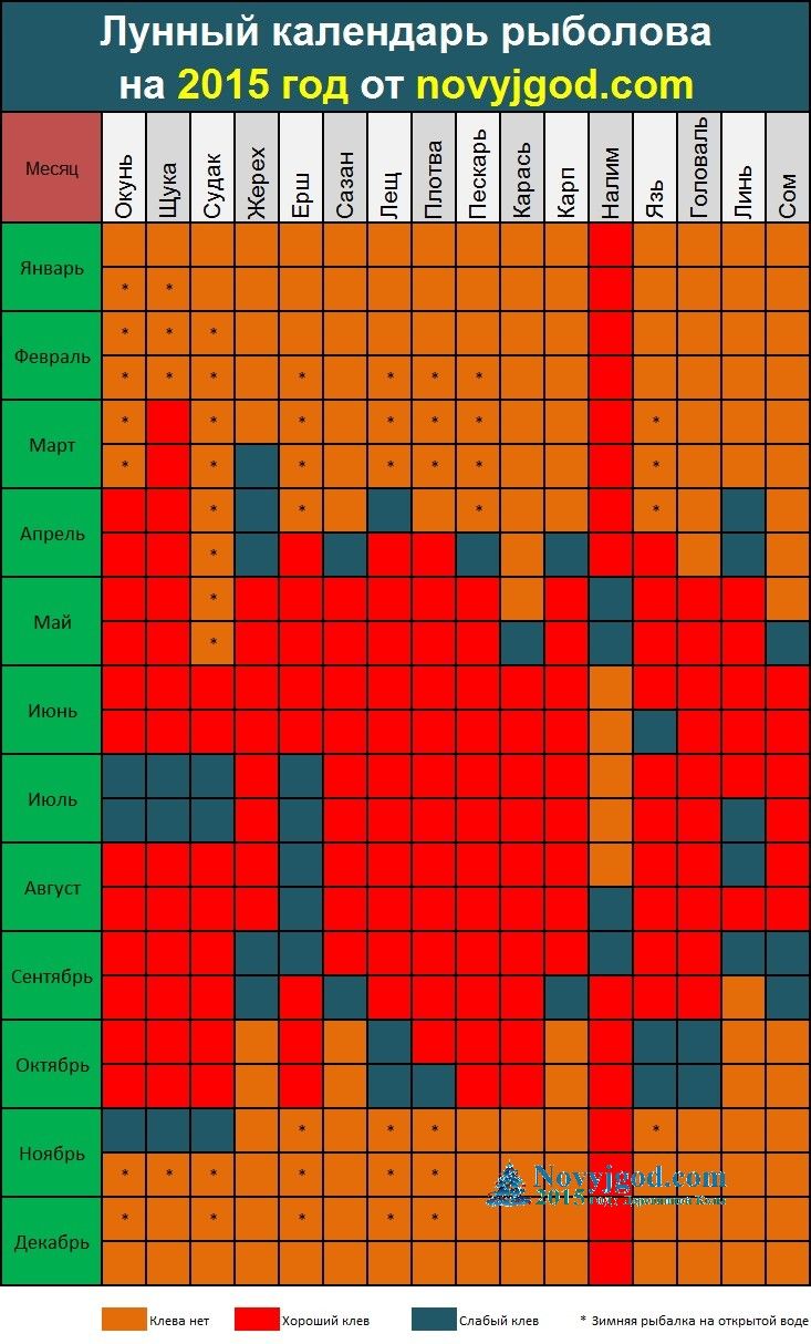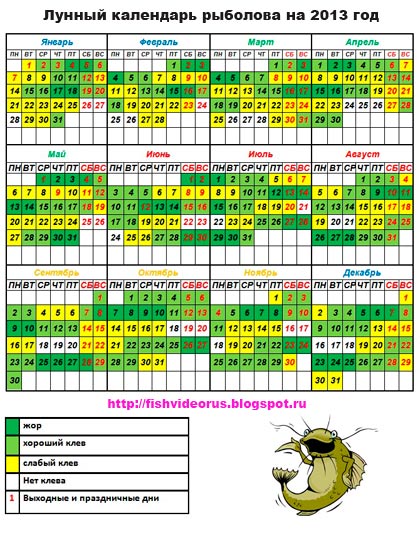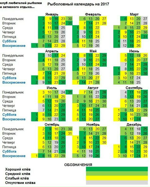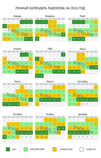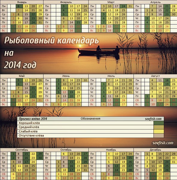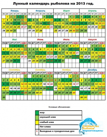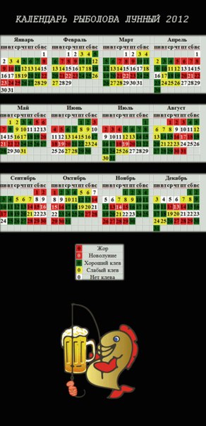 Выше представленный календарь отражает предположительный клев рыбы, основанный не только на изменениях небесного светила.