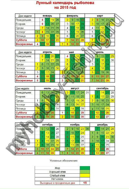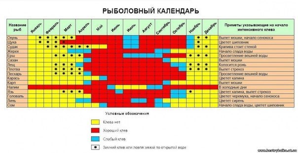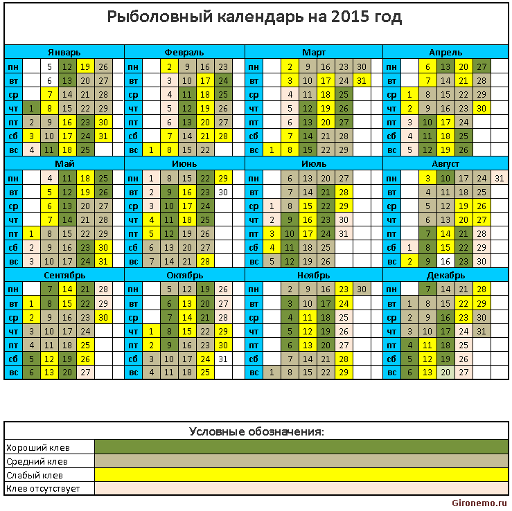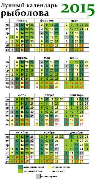 Плохой клев рыбы: с 1 по 5, с 11 по 15, с 27 по 31.