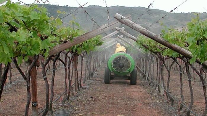 Земля между рядами используется для засыпки винограда вокруг ядер.