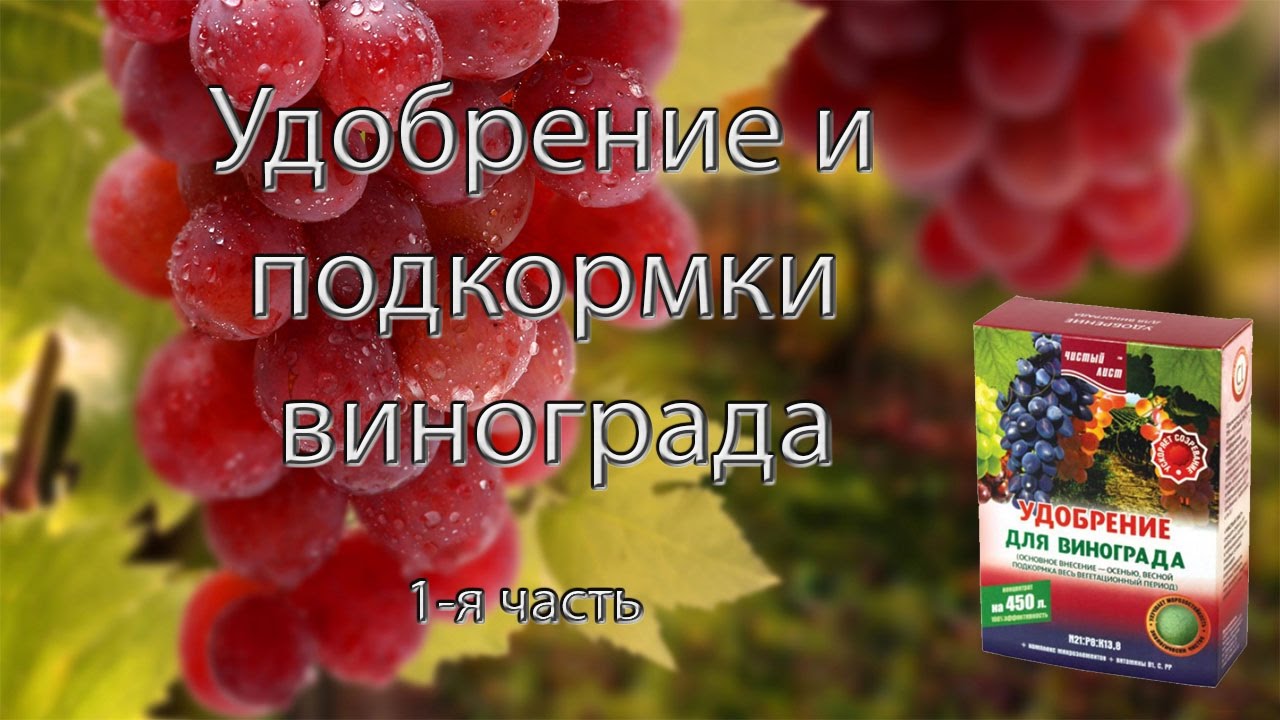 Для винограда очень нужны удобрения, калийные и фосфорные. Калий нужен для хорошего иммунитета и роста растения, для большей холодоустойчивости. Нехватка элементов калия обычно наблюдается на лёгких почвах. Кальций нужен для образования углеводов, он повышает урожайность и сахаристость ягод, лучше вызревает виноградная лоза. Фосфор оказывает большое влияние на рост и формирование плодовых почек, увеличивается накопление сахара в винограде и происходит ускорение созревание ягод. Азотные удобрения в основном влияют на процессы роста, его недостаток обычно испытывают почвы обеднённых гумусом и лёгкие почвы . На богатых гумусом чернозёмах виноград практически не нуждается в азотных удобрениях .