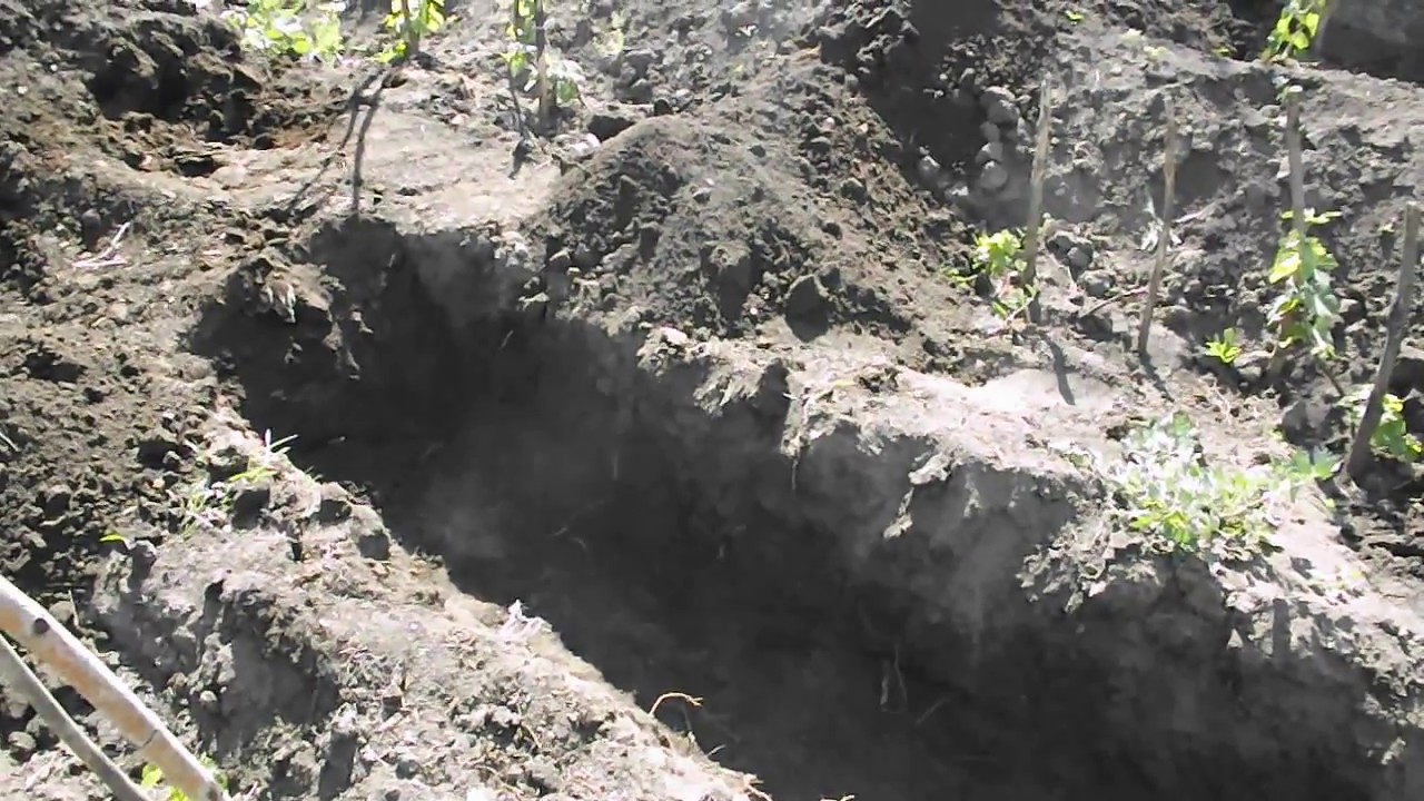- Подготовьте траншею (если предусмотрена технология) под уложенные лозы для мульчирования.