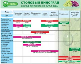 по 35 г, а фосфор – 15 г на килограмм урожая. Поэтому , это же количество удобрения нужно внести в почву. Фосфорно-калийные и органические удобрения для винограда вносить нужно раз в 3-4 года на почвах черноземных и раз в 2-3 года на песчаных почвах. Удобрения для винограда вносятся осенью после сбора урожая , начало-конец сентября.