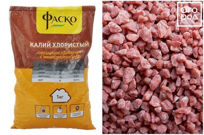 Калийная соль (калия – 30 – 40%) – это смесь калия хлористого с сильвинитом. Основное внесение имеет дозировку 10 – 20 грамм.