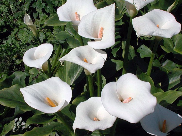 Самый знаменитый вид, завезенный из Южной Африки. Обладает корневищной, а не клубневой системой, как большинство видов. Лиственное покрывало белое. Эфиопская калла часто используется флористами при создании изысканных букетов.