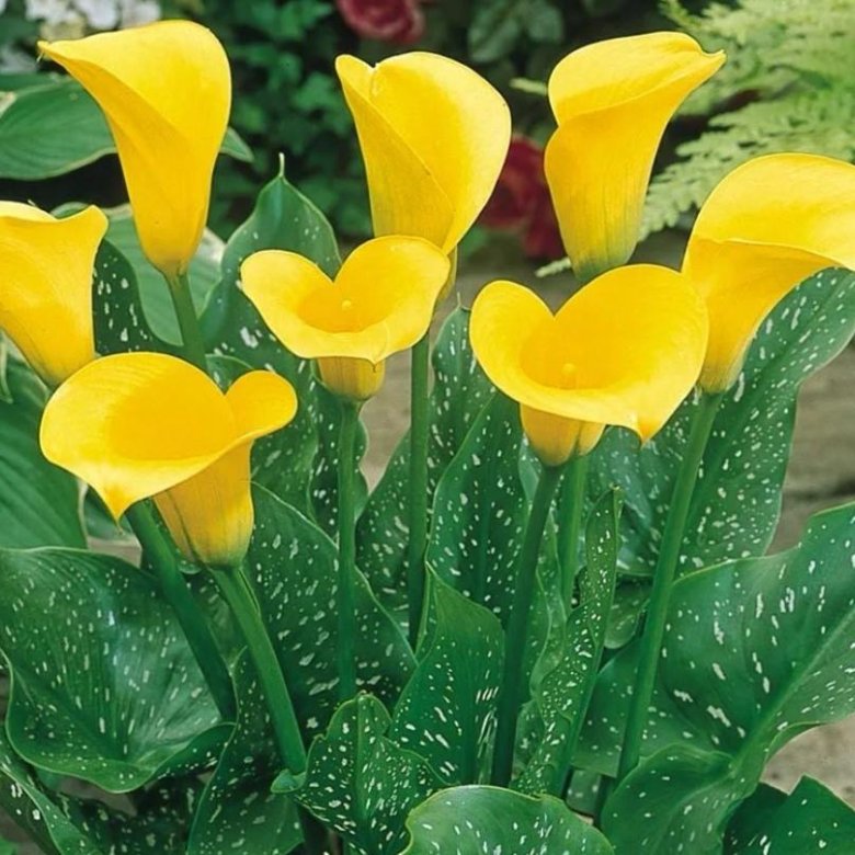 Каллы прекрасно смотрятся на любом открытом пространстве, их также можно взять с собой в виде срезанных цветов или использовать для создания великолепных цветочных композиций и букетов.