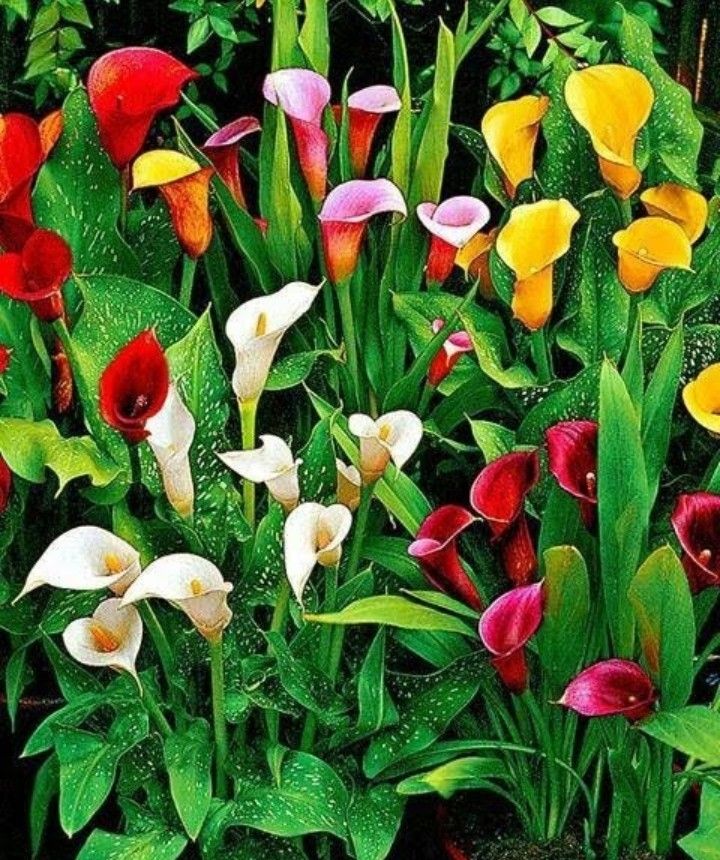 - Каллы прекрасно дополняют лесные сады, сады с прудами, болотные сады, дачные сады и любые другие сады, если они получают много солнечного света и влаги. При выращивании в качестве многолетников в лесных садах каллы можно сочетать с недотрогой, ирисами, хостами, папоротниками, лигуляриями и астильбами. Лучшими растениями-компаньонами для однолетних калл, которые растут в контейнерах, являются алиссум, арум, гелиотроп, ползучая Дженни, петунии, дихондра, герани, бархатцы, циннии, астры, анютины глазки и другие подобные цветущие растения.