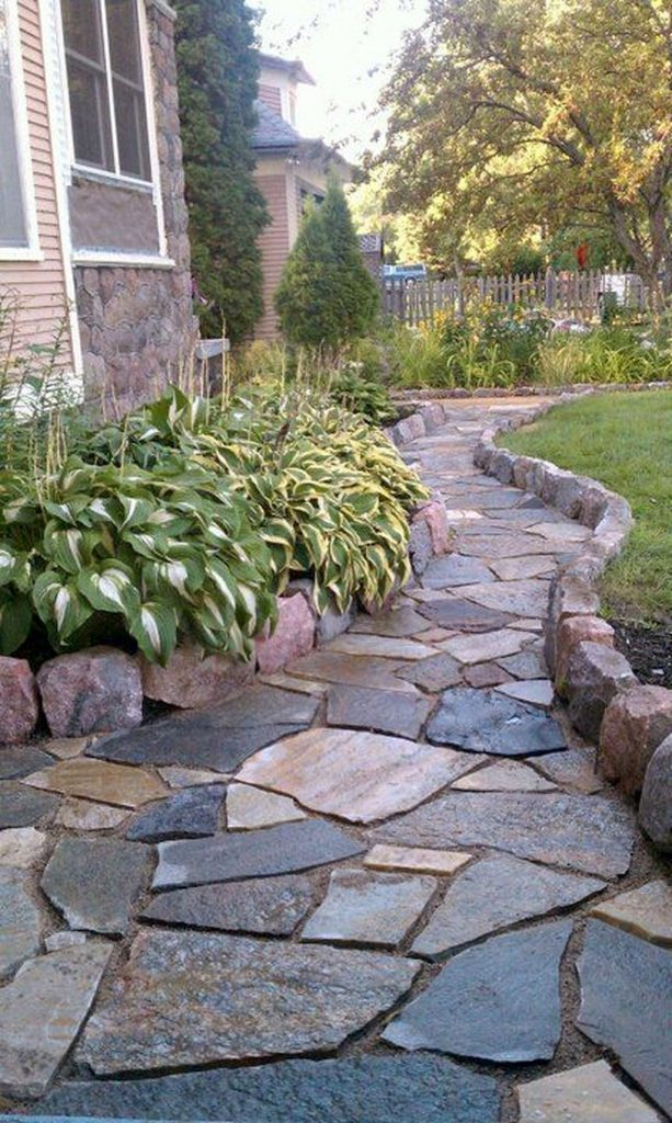 Дорожка имеет тенденцию выглядеть лучше всего, когда немного не идеальна, с камнями разных форм и размеров, разнообразной текстуры и разных цветов. Примите несовершенство, когда мечтаете о собственной каменной дорожке.