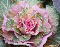 Декоративной называют некоторые сорта огородной капусты (Brassica oleracea) с цветными (красными, розовыми, белыми) внутренними листьями и зелеными наружными.
