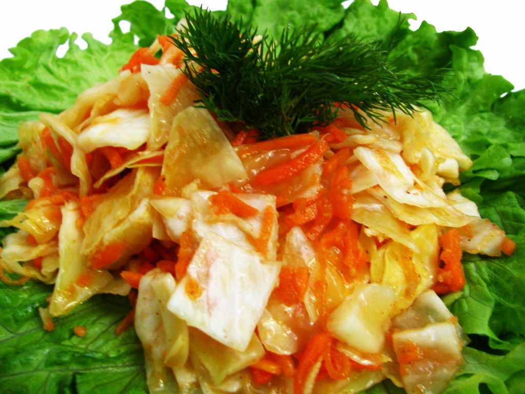– Готовую капусту можно посыпать ароматной зеленью (свежей или сушеной) перед подачей на стол.