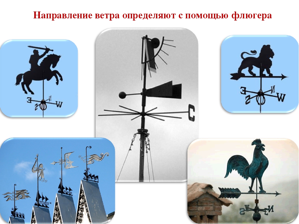 Итак, как мы узнаем, откуда дует ветер? Можем использовать флюгер! Флюгер — это инструмент, который показывает, с какой стороны дует ветер. Их часто ставят на крышах зданий в самой высокой точке.