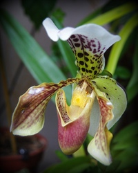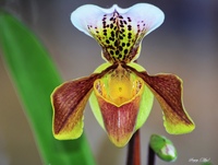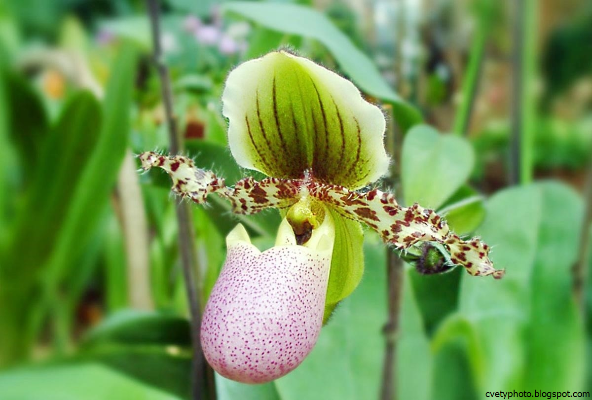 Венерин башмачок (Paphiopedilum) – такое имя вида связано с именем божества любви. Нестандартный вид губы, которая внизу образует кармашек, своим видом похож на носок туфельки. Не даром пафиоделиум еще называется «венериным башмачком». На самом деле это западня для насекомых. Вылезут оттуда в слое пыльцы и спешат оплодотворить другие цветочки.