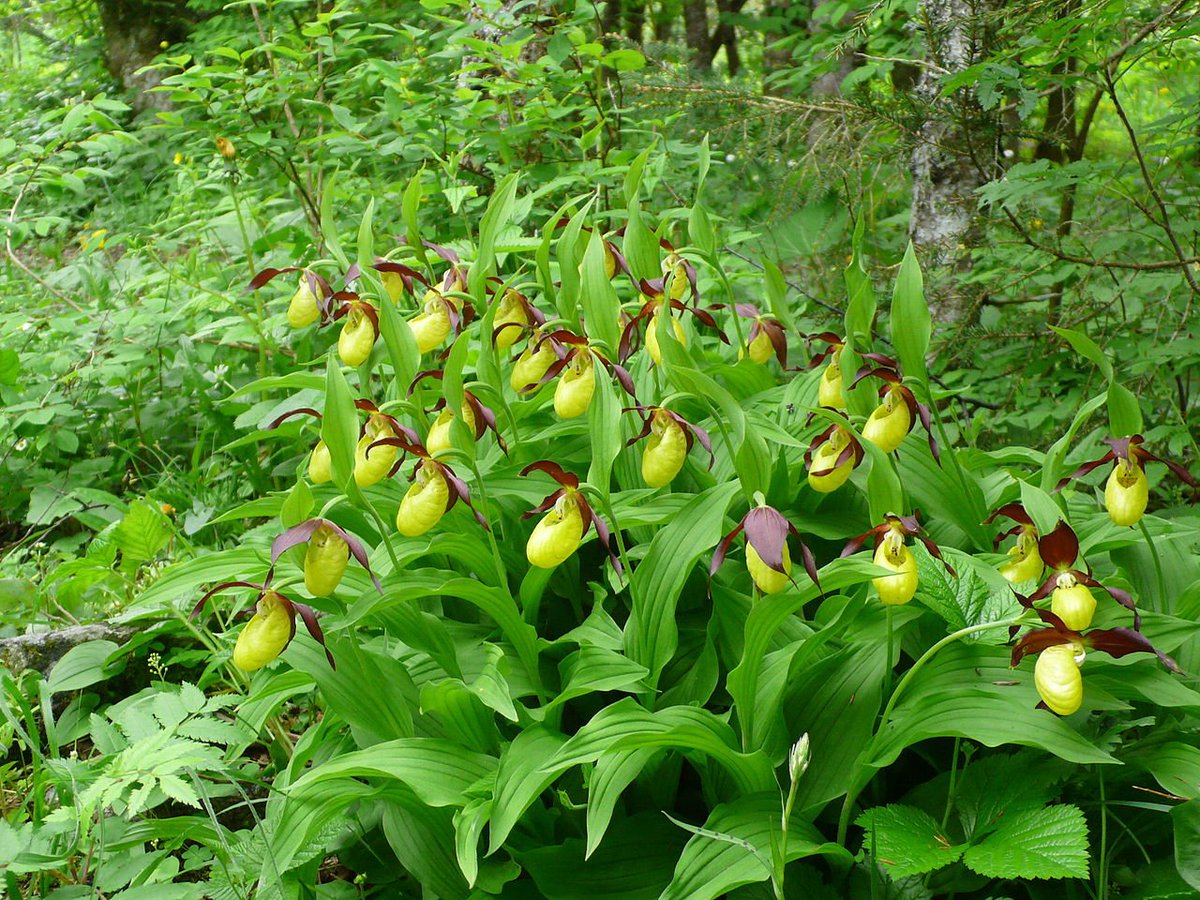 На клумбах в саду выращивают башмачок Cypripedium calceolus. По данным Королевских ботанических садов, существует более 50 видов такого растения, произрастающих в различных странах. Следующее описание правил посадки и ухода посвящено именно им, циприпедиумам.