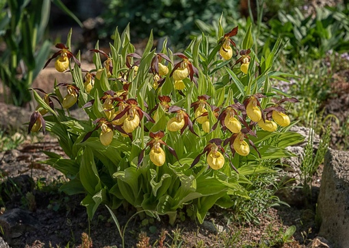 Циприпедиум подходит для выращивания на теневой клумбе и подбирать для него соседей непросто.