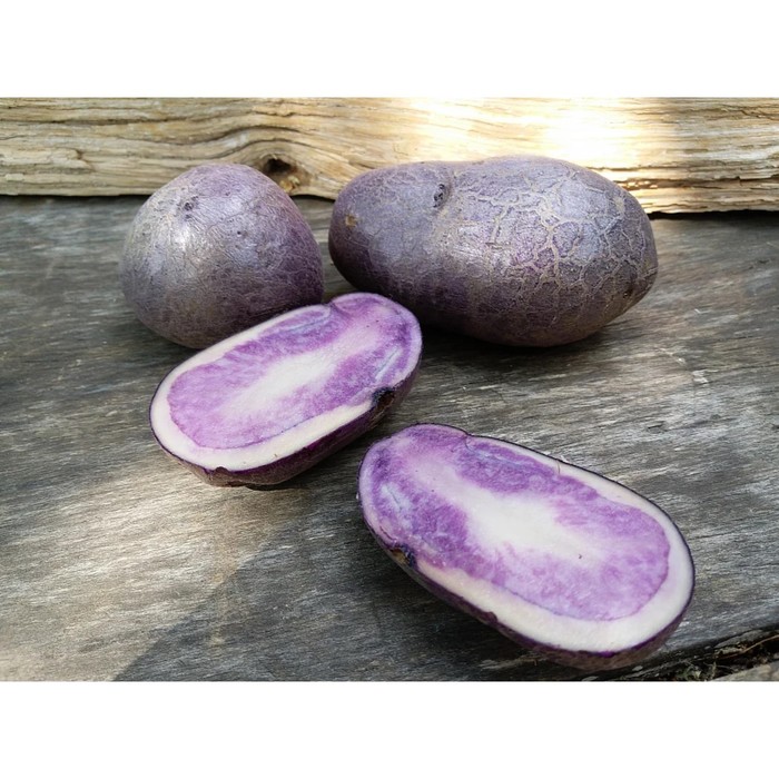 Фиолетовый картофель — это разновидность картофеля, у которого кожура или как кожура, так и мякоть окрашены в фиолетовый цвет. У вас есть весь спектр картофеля, который фиолетовый снаружи и белый/кремовый внутри, как восточный сладкий картофель/мурасаки, с фиолетовой кожурой и смесью белой и фиолетовой мякоти, а затем картофель и сладкий картофель, которые имеют пурпурную кожу и пурпурную мякоть.