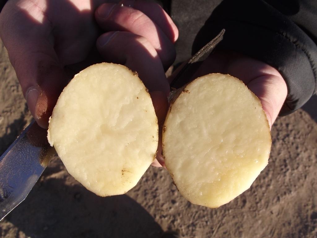Крахмала в них около 17%, а сахара 0,12%. При нарезке срезы не темнеют, что дает возможность готовить драники и оладьи, которые остаются светлыми. При варке и жарении мякоть не рассыпается, а сохраняет форму. Пюре получается пышным и ароматным.