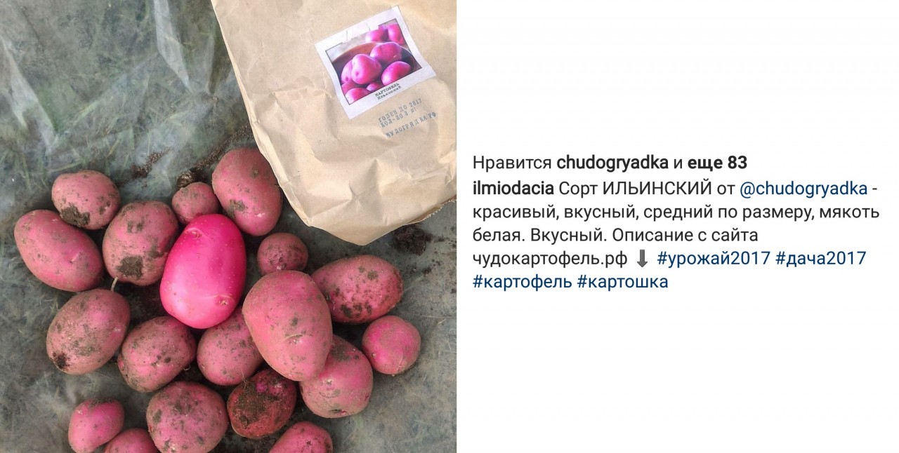 Людмила Николаевна, дачница: «Картофель Ильинский на развод мне дала соседка пару лет назад. С тех пор отдаю предпочтение именно ему. Современные гибриды не внушают доверия, потому как много сейчас говорится о генномодифицированном картофеле, а я сторонница здоровой и натуральной пищи. Старый и проверенный Ильинский на моем участке показал отличный результат. Правда, летом пришлось похлопотать над ним и провести своевременную обработку. Зато всю зиму картофель мы не покупали и весной посадочный материал был свой».
