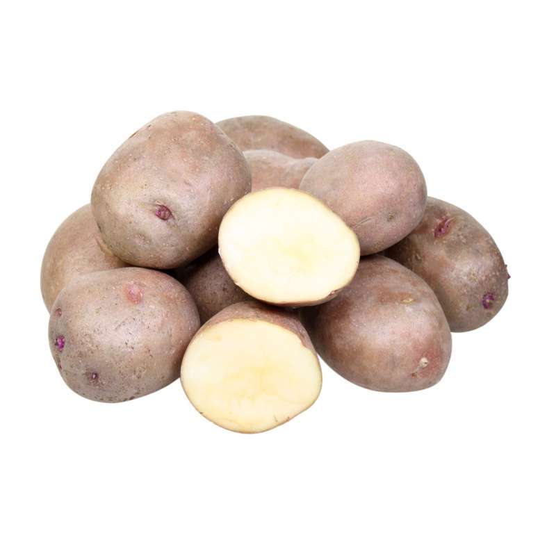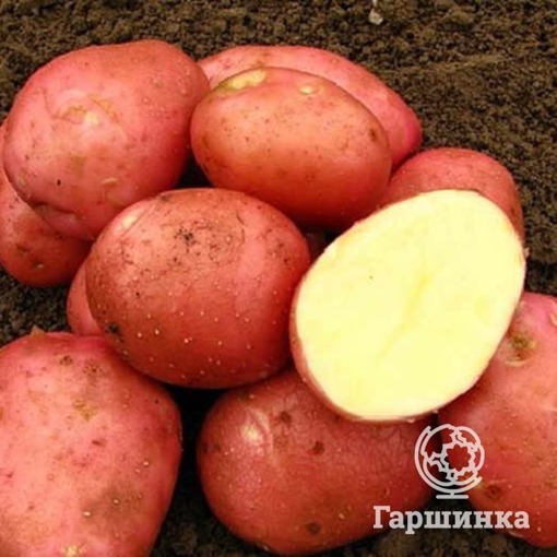 В плодовом гнезде созревает до 12 плодов. Их вес бывает от 55г до 160г. Клубни овальные, покрыты тонкой кожурой, красноватого цвета. На ней расположены красные глазки небольшого размера. Они находятся в мало заметных углублениях. Белая мякоть содержит до 18% сухого вещества.