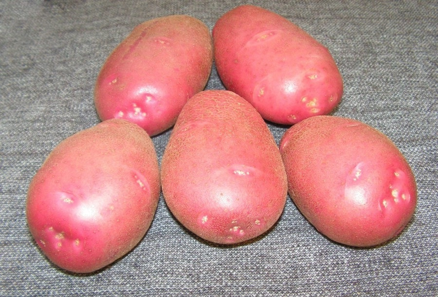 Клубни округло-продолговатые, розового, иногда красного цвета. Вес картофелин 60-150 г.