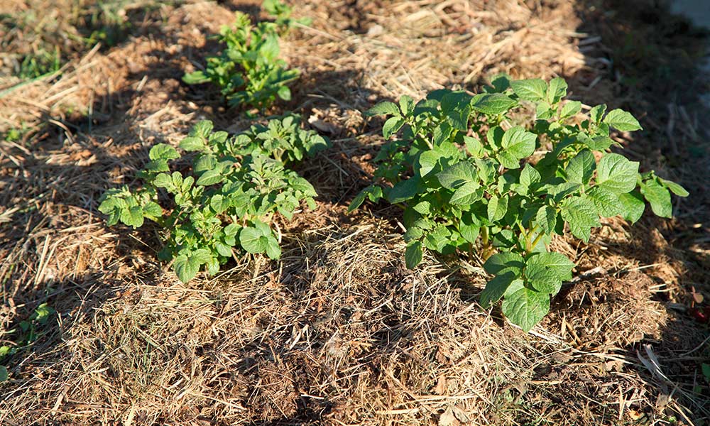 * Возможно, вам придется добавить больше мульчи в середине сезона, чтобы картофель не подвергался воздействию солнечных лучей.