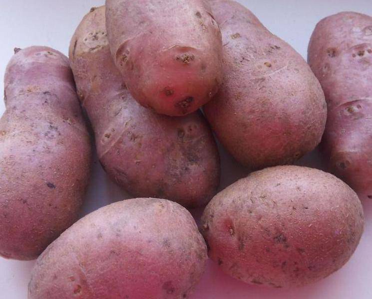 | Кожура | Красная, насыщенность антациановой окраски зависит от кислотности почвы. Глазки мелкие, поверхностные, редкие. |