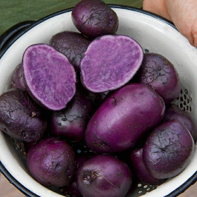 Мы едим глазами! Что может быть лучше, чем добавить что-то голубое, смелое и красивое в вашу презентацию еды. Королевские цвета ярко-синей/фиолетовой кожуры и желтой мякоти с пурпурными прожилками внутри, эти маленькие картофелины обязательно покорят ваших гостей на презентации и взбудоражат всех, пока они готовятся за считанные секунды.