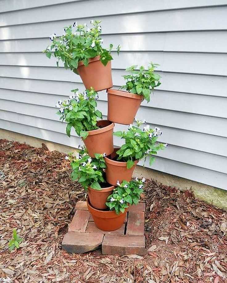 Каскадная клумба в саду с помощью обычных цветочных горшков — ВикиСтрой