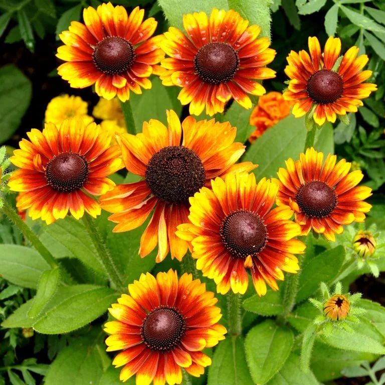 Очень милые и яркие. Большой сортовой диапазон с разной высотой куста, величиной и окраской цветков. Цвета бутонов всегда теплые: от бледно-желтого до красно-коричневого. Бывают простой и махровой формы. Кустики густо разветвленные, компактные и устойчивые. Для бордюров используют сорта, вырастающие до 20 см, а для клумб – до 60 см. Бархатцы выносливы, холодоустойчивы, легко переносят засуху и бедный грунт, но тень и сырость не любят. Лучше выращивать через рассаду, тогда цветение начинается с конца мая. Источают не слишком приятный запах, но это особенность цветка отпугивает вредителей, среди которых бабочки белянки, совки, долгоносики, колорадские жуки и т.д.