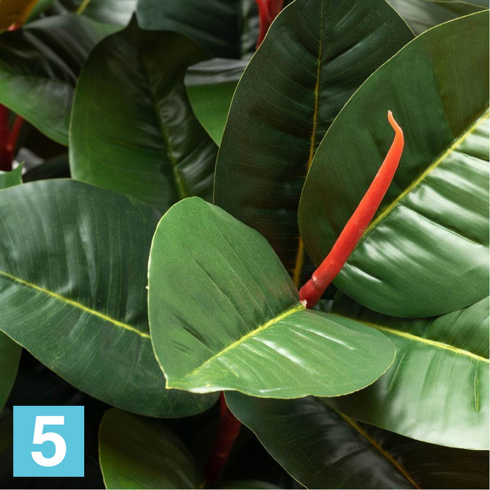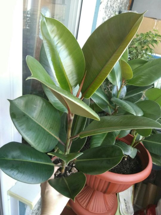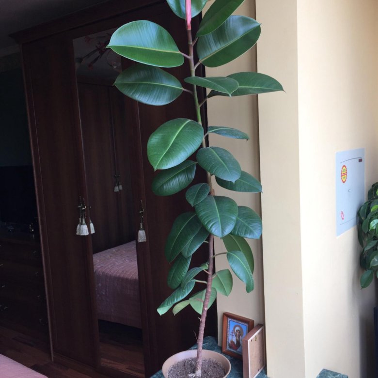 - Фикус каучуконосный славится своими крупными кожистыми листьями. Но они могут мельчать, если растению не хватает питательных веществ.