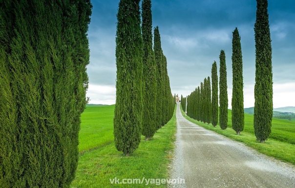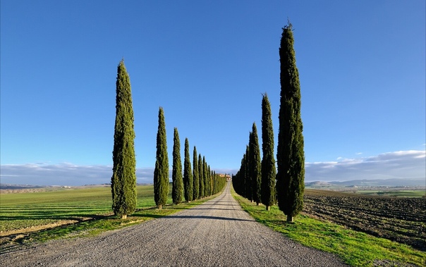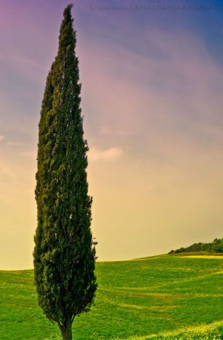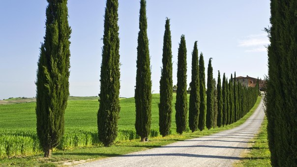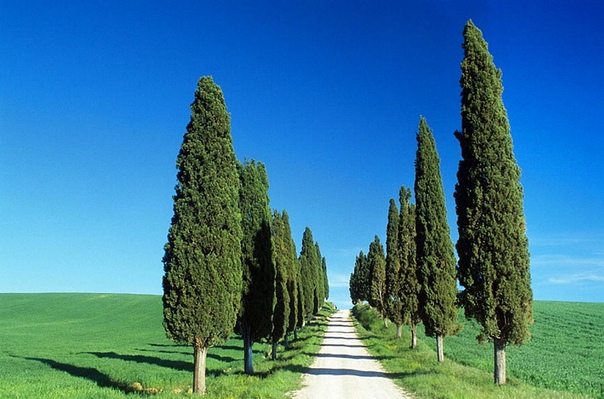 Великолепное кипарисовое дерево — типичный символ ландшафта Тосканы в Италии.
