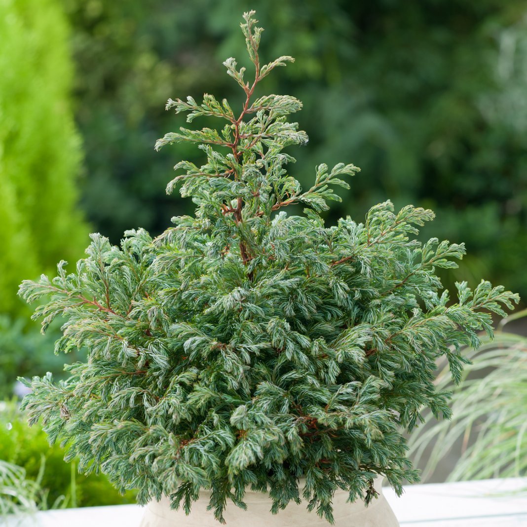 - «Naylor’s Blue» известен своей привлекательной сине-серой листвой. Он вырастает до 60 футов в высоту и от 10 до 15 футов в ширину. Чешуйчатая хвоя различается по цвету в зависимости от сезона. Зимой приобретает призрачно-серый оттенок.