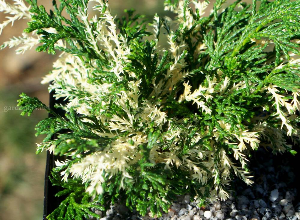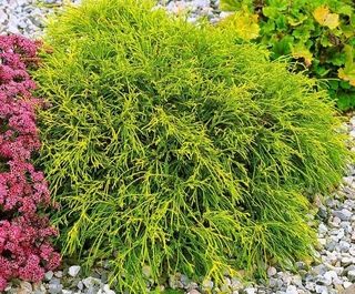 и 2 м. в диаметре. Побеги тонкие, нитевидные, свисающие красиво до земли, разрастаются равномерно. Хвоя чешуевидная, мягкая, жёлто-зелёная или золотистая. Требования к почве и влаге средние. Рекомендуется высаживать в солнечном месте, в каменистых и вересковых садах. Зона зимостойкости 5В