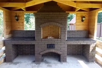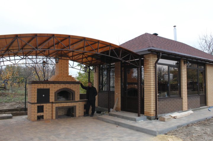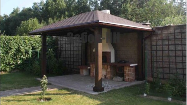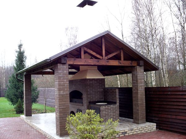 - Зона отдыха и барбекю. Кровля на кирпичных опорах.